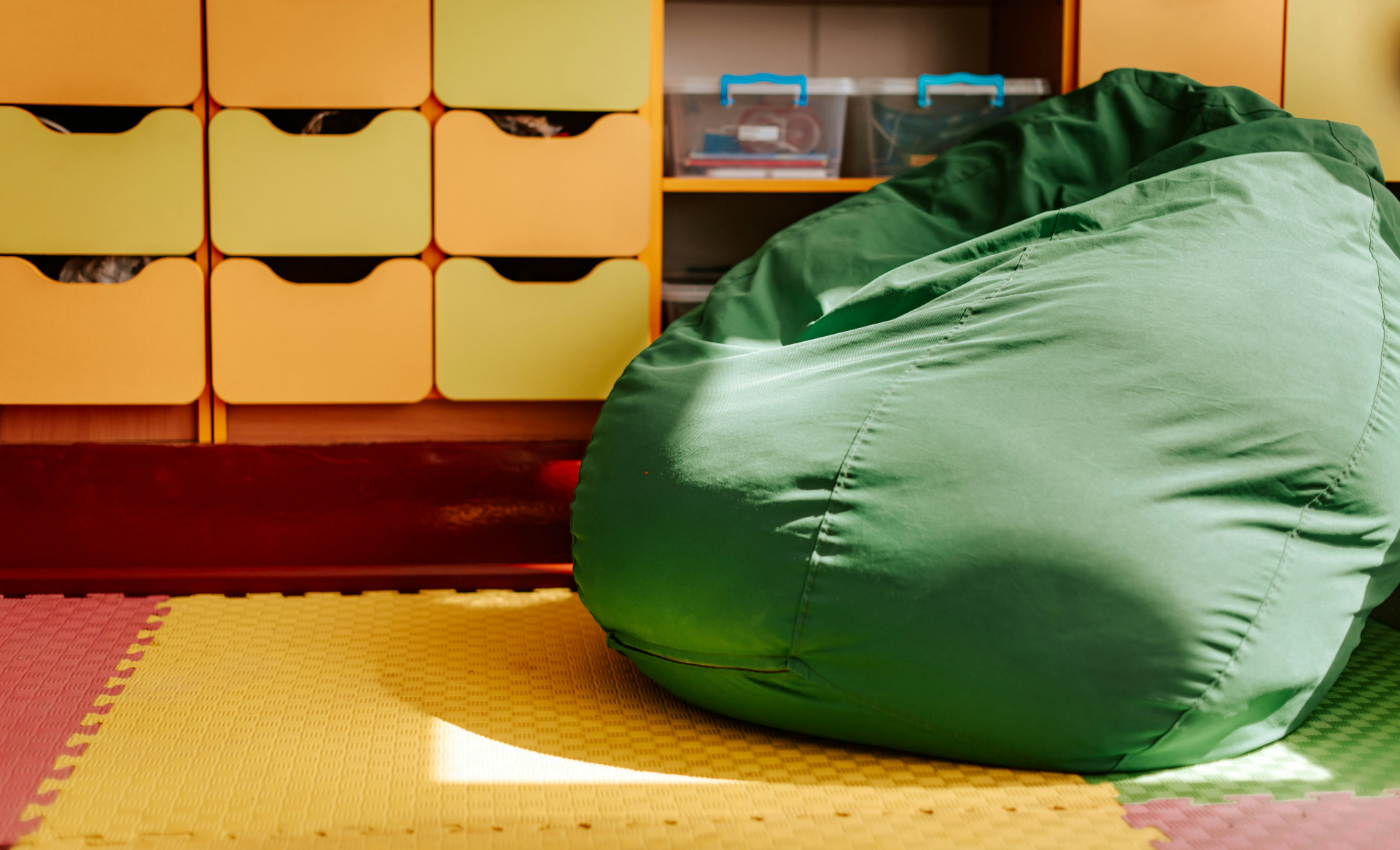 Mindre saccosekker for barn kommer i fargerike design og former som passer til barnerommet. De er lette, trygge og enkle å rengjøre.